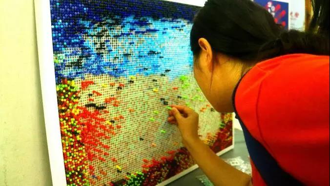 美术与设计学院结合本专业特色,让新生合力完成开学第一画——钉子画《麦田群鸦》,既体验到团结合作的乐趣,也融入“美院一家人”的理念。一楼大厅布置了学长学姐的部分优秀作品为新生树立了学习的榜样。