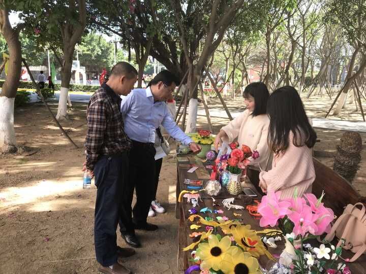 中山广场中心,教育与科学学院展示百米长卷,每一幅画讲述着不一样的故事;中山广场上的木桌部分区域,习近平新时代中国特色社会主义思想读书社开展泉师的第五期红色阅读月和习近平新思想的读书活动,邀请喜欢读书的同学与他们一起阅读和学习;在读书协会一旁摆放着手工协会制作的各种手工艺展品,每个手工艺都有着不一样的亮点映入眼帘。在中山广场的右侧,轮滑协会的小伙伴围着障碍物绕行,似乎与它们进行别样的交流。文科楼B一角,棋牌协会举行棋牌友谊赛,在这里可以看到各种爱好棋牌的人聚集于此。走到操场的足球场上,跆拳道协会和武术协会的成员们在这练习着他们的基本功和日常训练,即使有着汗水也乐在其中!校道上的鸟巢图书馆似乎也与往常有所不同,读者协会放置了琳琅满目的书籍,也在用自己的方式庆祝学校60周年华诞。校社联宣传部和摄影协会以及学生通讯社组织了一支摄影队伍和新闻队伍,对当天活动进行跟踪。