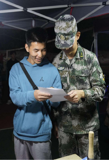 2022年4月,迷彩先锋社组织退伍学生在学校征兵服务站为新兵同志们理发,学工部(武装部)还给新兵同志赠送纪念品。