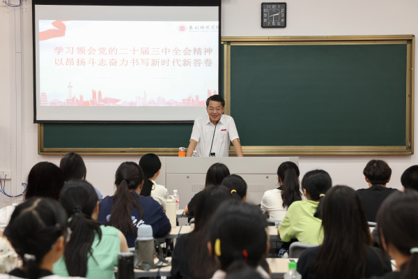 为深入学习贯彻党的二十届三中全会精神,汲取奋进新征程的时代伟力,10月17日下午,校党委书记、校学习宣传贯彻党的二十届三中全会精神宣讲团团长柯瑞清走进教室、走上讲台,以“学习领会党的二十届三中全会精神,以昂扬斗志奋力书写新时代新答卷”为题,为教育科学学院2023级特殊教育专业的同学们讲授《形势与政策》课,宣讲党的二十届三中全会精神。