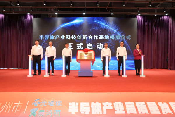 李建辉、柯瑞清、李文生、雷连鸣、夏侯建兵、陈秋燕共同为“半导体产业科技创新合作基地”揭牌。