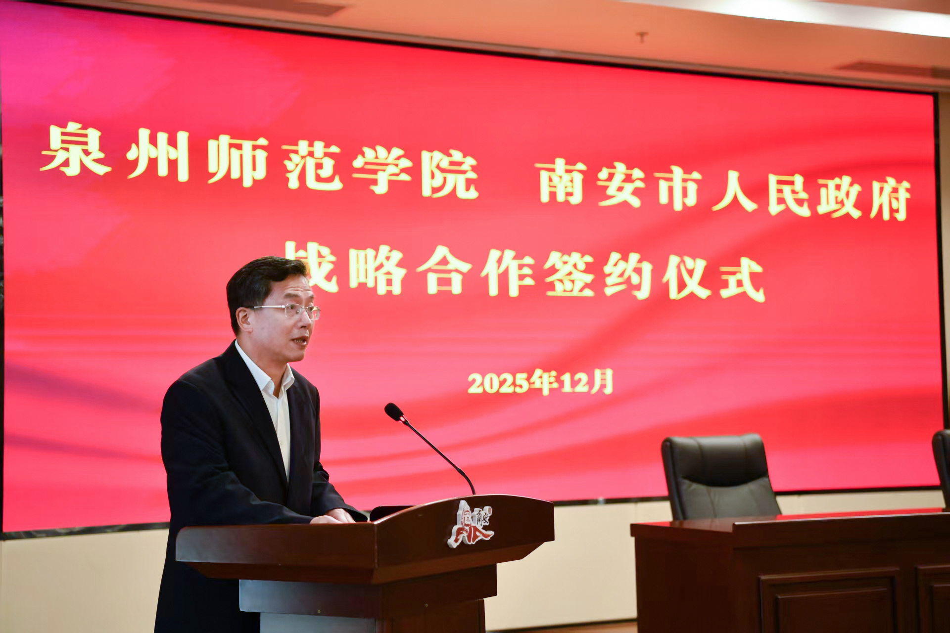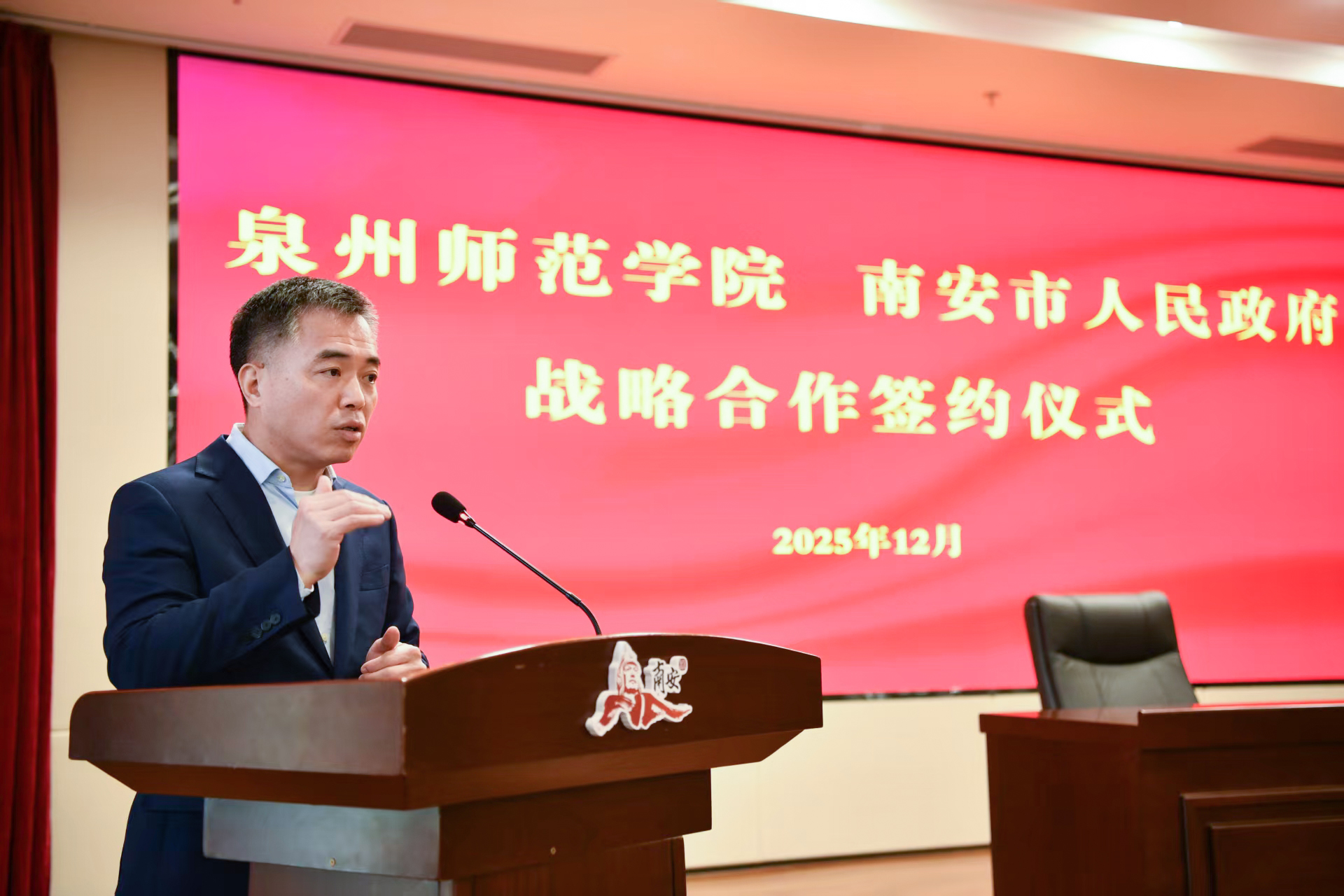 张桂森代表南安市委、市政府向我校一行的到来表示热烈欢迎和衷心感谢。在致辞中介绍南安深厚的历史文化底蕴、社会经济发展成果和“十五五”规划的愿景规划。他表示南安作为全省县域经济发展的“排头兵英国威廉希尔公司官网建设特色鲜明的一流应用型大学目标,具有校地结合、校地互补、校地共赢的空间和潜力南安将珍惜此次合作机会,把南安“所想所能”和学校“所强所能”紧密结合,期待双方能够以此次签约为新的起点结出更多丰硕果实,为南安高质量发展插上腾飞的翅膀。