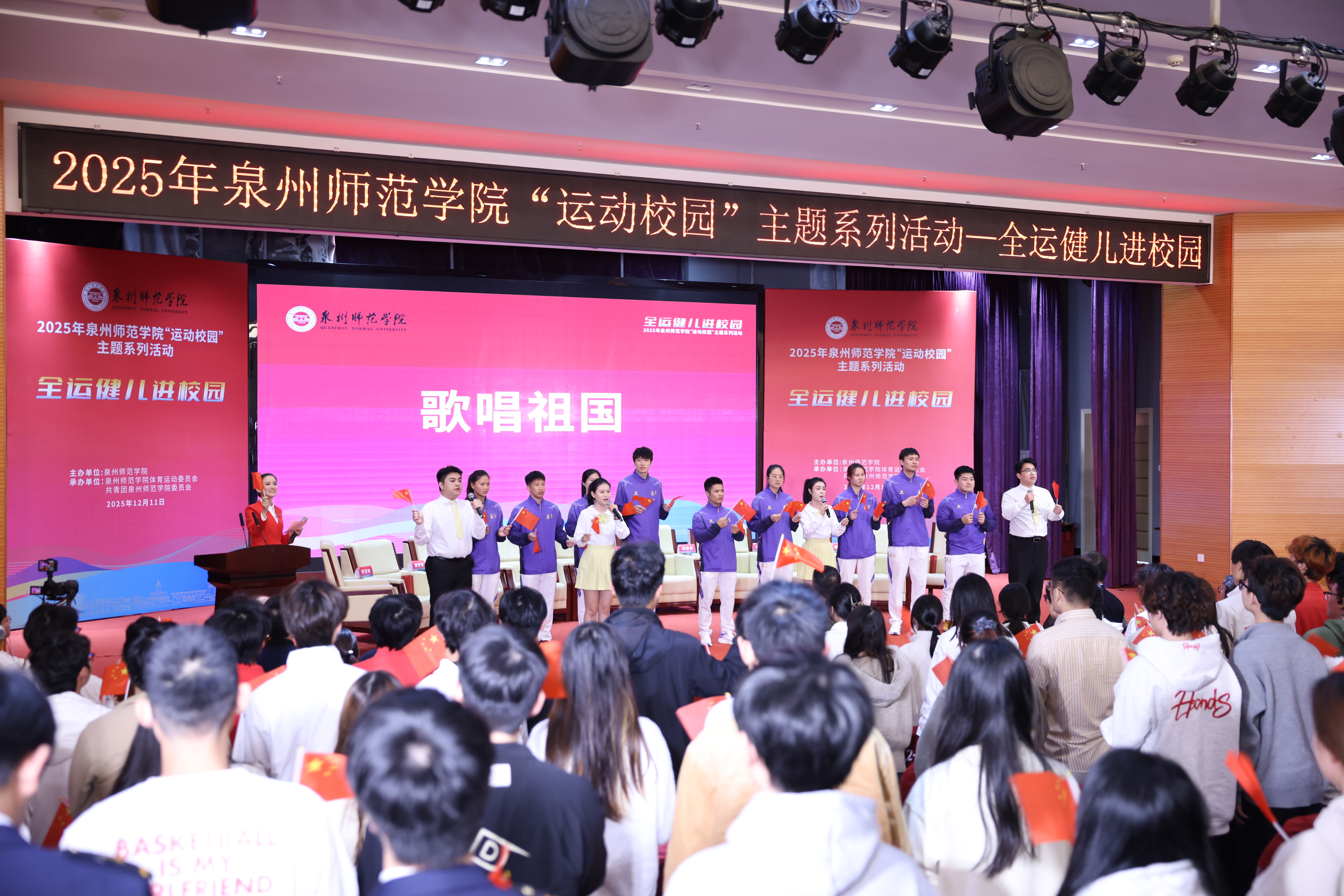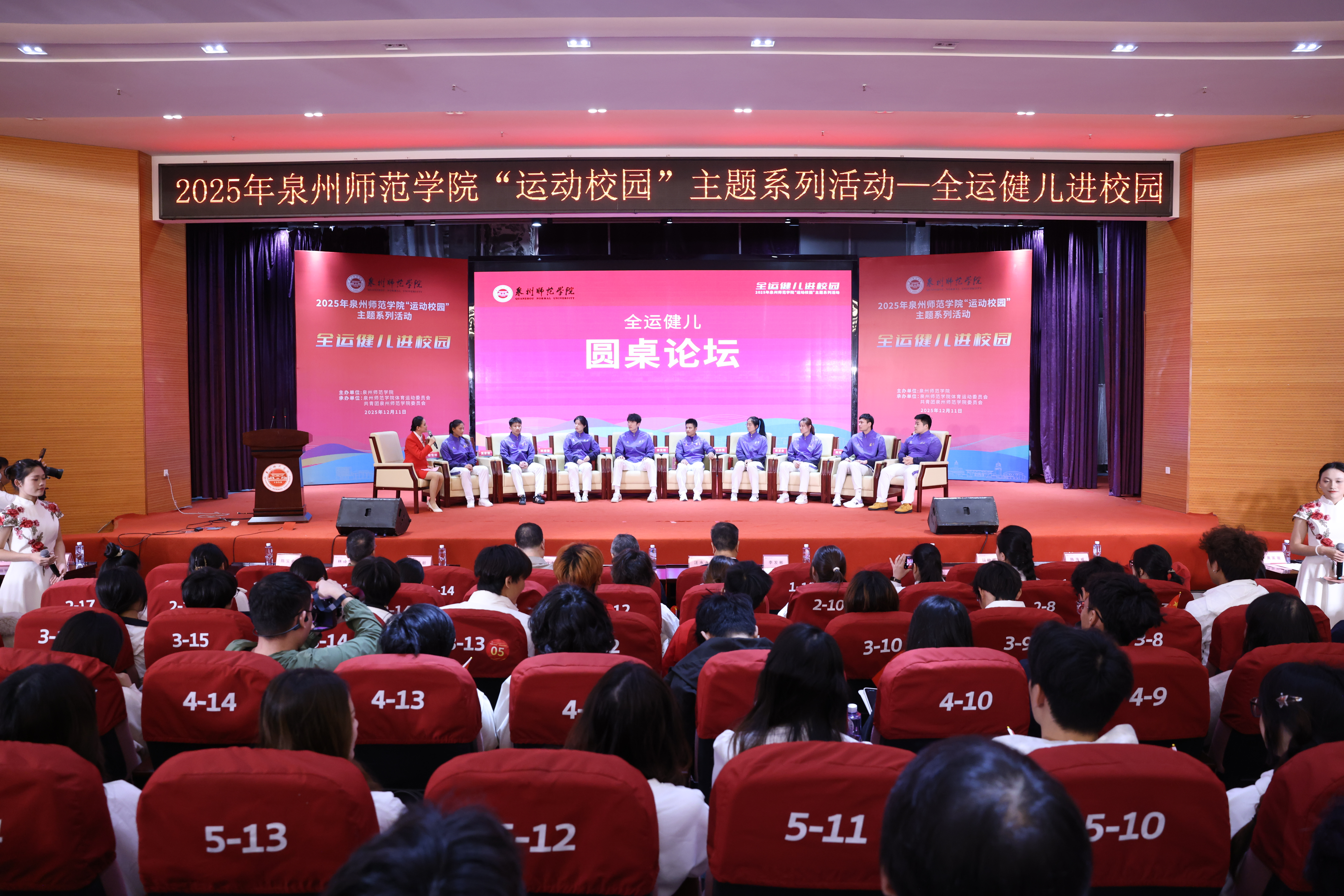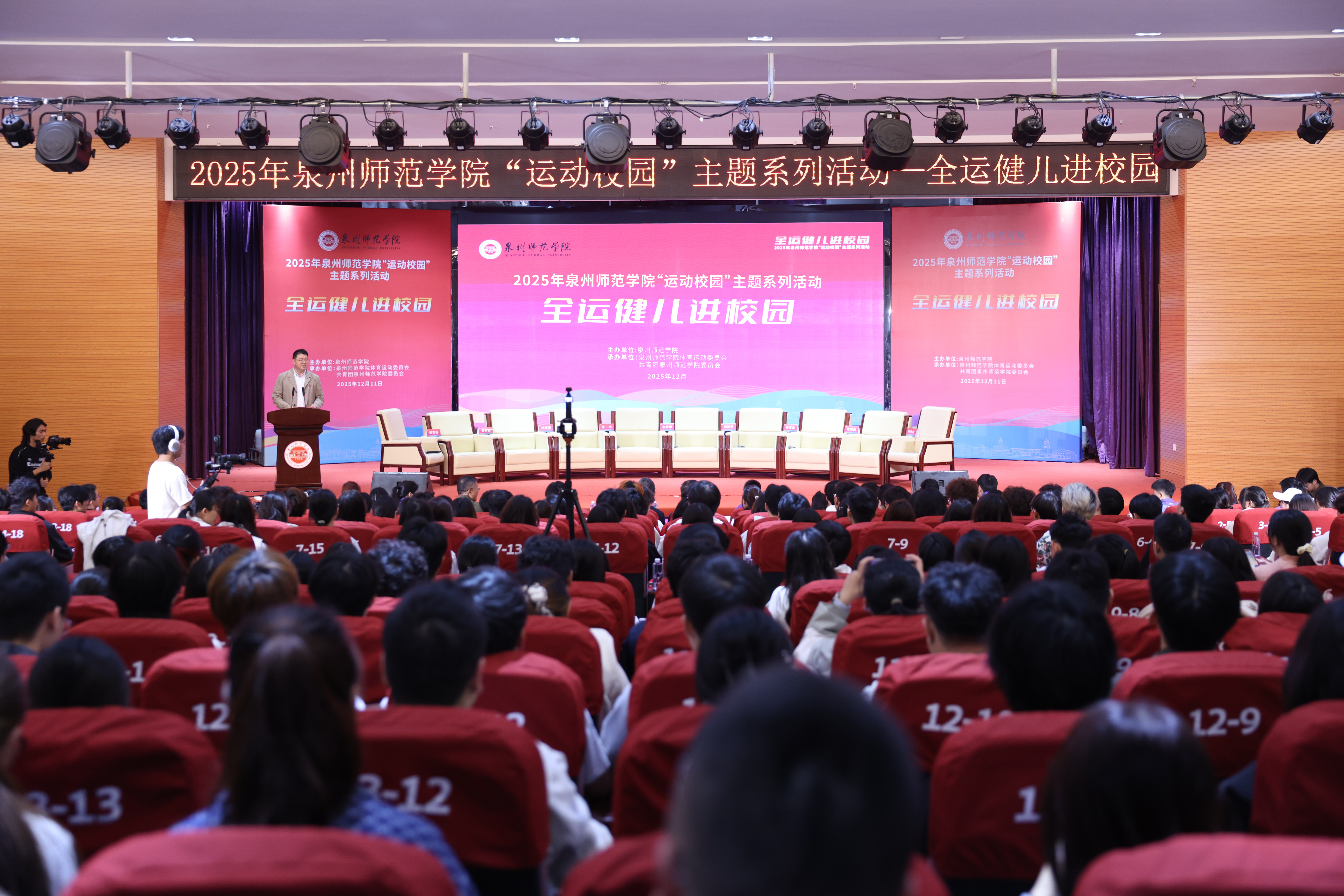 12月11日上午,2025年“运动校园”主题系列活动——“全运健儿进校园”在特教大楼第一学术报告厅举行。李发彬、许杰、杨静雯、黄家骏、陈海威、林绮雯、陈宝金、赵永超、谢雪婷等9位在第十五届全运会上载誉归来的体育健儿走进泉师校园,与师生面对面交流,传递中华体育精神,共话青春奋斗之路。校长陈昌萍、泉州市体育局局长汪水永及学校300余名师生代表参加,副校长夏侯建兵主持活动。