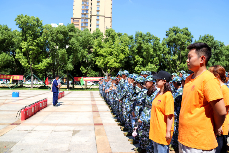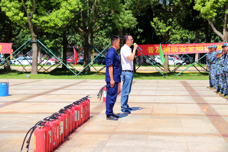 我校开展2019年“消防进军训”灭火和应急疏散演练活动