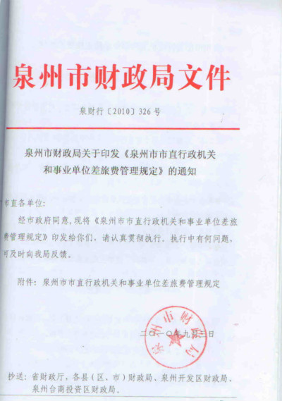 《泉州市市直行政机关和事业单位差旅费管理规定》已于