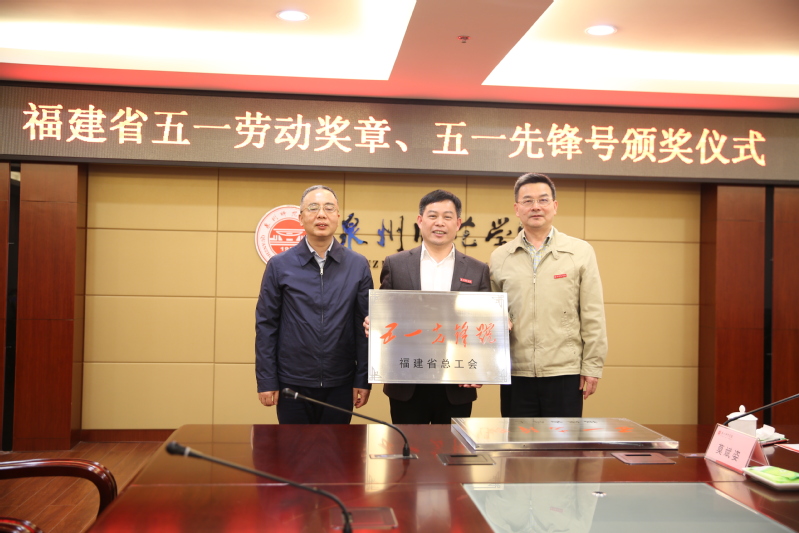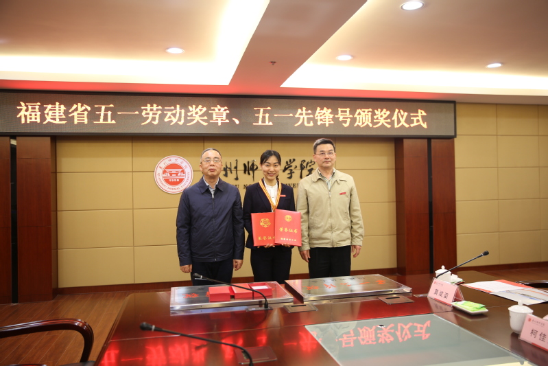 On March 27, the awarding ceremony of Fujian May 1st Labor Medal and May 1st Pioneer Unit was held at the Administration Building of QNU. Mr. Guo Lixin, director of the working committee of Fujian Trade Unions of Education, Science, Culture, Health and Sports (TUESCHS), Mr. Zhu Yimin, investigator of Fujian TUESCHS, and Ms. Yu Ying, vice president of Quanzhou Education Trade Union attended the ceremony.The awarding ceremony was presided over by Mr. Gao Yuncheng, vice Party Secretary of CPC Committee of QNU, with the attendance of leaders and representatives from QNU Labor Union, the Office of Academic Affairs, and the School of Ocean and Food Science.