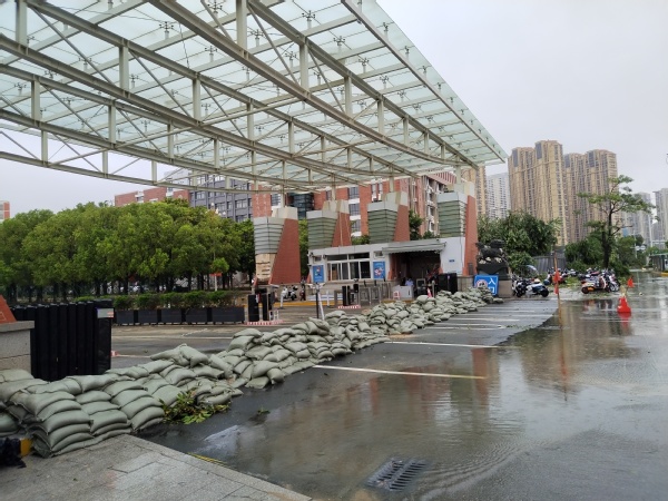 积极防御。全面摸排人员。教师工作部、学生工作部牵头摸排师生员工情况,将台风信息、防御知识、安全提示、工作要求等通知到每一位师生员工,确保防汛防台风人人皆知;全面停课停学。7月27日起关闭教室、实验室、图书馆、自习室、体育场馆,在建工地停工,各类培训停止活动,在外实习实践、暑期研学活动立即停止并妥善安排;全力保障救援。加强防汛应急物资储备,应急救援人员统一配备安全帽、强光手电筒、救生衣、防护雨具、救生哨等5小件,加强工人、保安、宿管、楼管等应急救援人员的安全保障措施;全力排查隐患。开展安全隐患排查整改,紧急增加采购防汛沙袋近5000袋,校大门进行封堵,避免市政排水倒灌,对楼栋玻璃门窗等进行加固,对围墙、边坡、陡崖、在建工程等区域再排查,对树木进行防护,对楼栋屋顶排水管网、路面排水管网、窨井盖等进行排查清理,对可能存在的危险隐患,提前组织警戒。