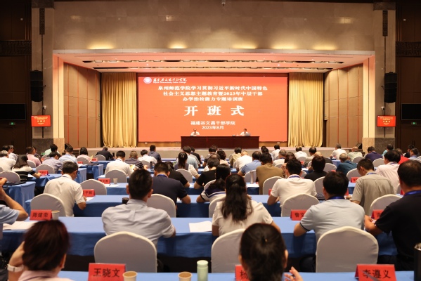 8月12日,我校学习贯彻习近平新时代中国特色社会主义思想主题教育暨2023年中层干部办学治校能力专题培训班在福建谷文昌干部学院开班。全体校领导、中层干部参加。开班式由校党委副书记、校长屈广清主持。