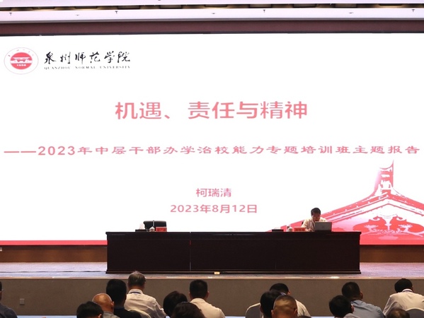 开班式结束后,柯瑞清为全体学员作题为《机遇、责任与精神》的主题报告。他从贯彻落实党中央关于建设教育强国的部署,贯彻落实习近平总书记关于教育的重要论述,贯彻落实习近平总书记在福建工作期间两次莅校视察指导作出的“建设多学科的大学”的重要指示以及贯彻落实省委省政府部署要求的高度,深入分析了学校当前发展面临的机遇和挑战,强调指出要推进主题教育走深走实、构建与学校事业发展相适应的干部队伍、强化学校党建和思想政治工作守正创新,并结合学校实际,围绕“相信泉师,抓住机遇”“发展泉师,扛牢责任”“提升泉师,关键在党”等三个方面分享了关于推动学校事业高质量发展的思考与体会。
