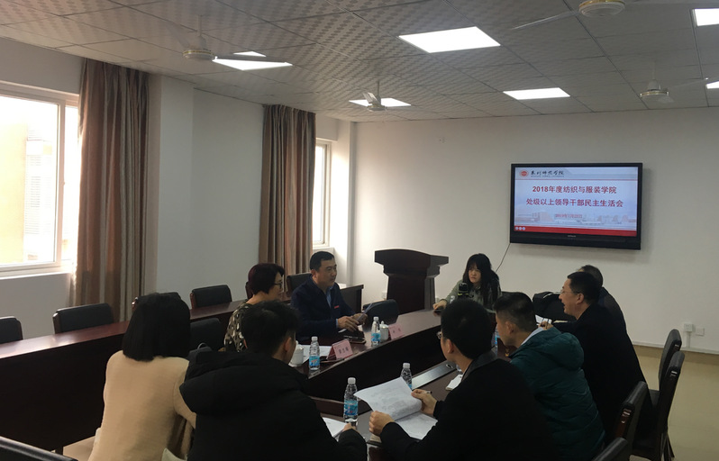 2019122日上午,纺织与服装学院于王爱约实验楼701会议室召开2018年度处级以上党员领导干部民主生活会。校党委副书记林伟、学生处副处长黄志梅莅临参会,会议由学院党委书记张玉武主持,学院各党支部书记、各系主任、科室负责人、党建工作专题会成员参会。