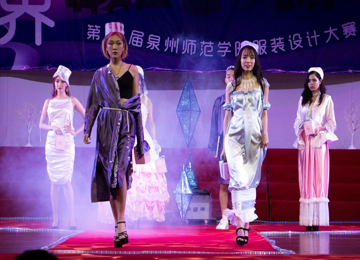 此次大赛以“无界”为主题展开,分设整体搭配、舞台效果、造型设计、工艺制作和走秀评分五个环节综合计分。舞台上,模特们迈着自信优雅的步伐,展现服装款式的精妙设计和色彩的完美搭配,触动着现场每个人的视觉神经。其中,有将孔雀开屏的状态运用于服装的《雀羽霓裳》,以暗黑系列为主的《天生的被谋杀犯》,还有串着搞笑小剧情的《Darkness project》等,都体现无界的天马行空。令人眼前一亮的的是由林彩云、郑琪文、吴思敏三位设计师所展示的作品《迟暮》,她们将各种几何形状与颜色进行解构搭配,让形与色完美结合,呈现出令人耳目一新的视觉震撼,最终获得本次大赛金奖。