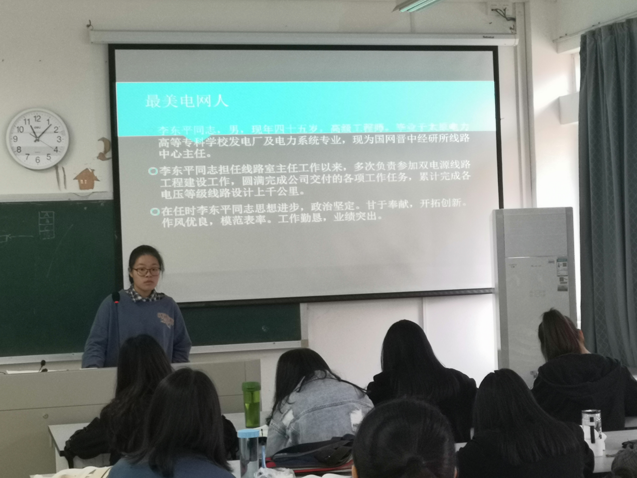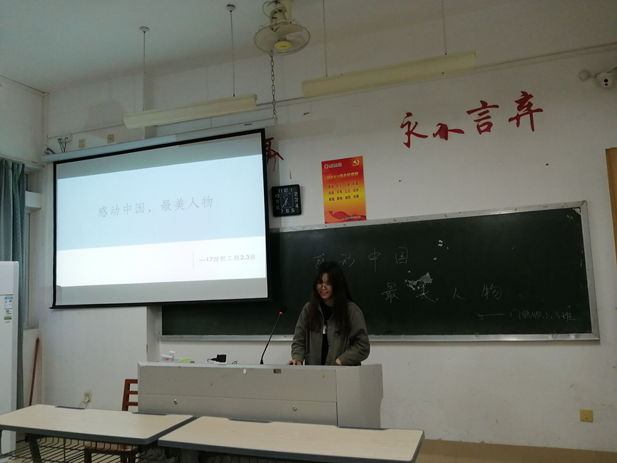2017级纺织1班以观看视频的形式,帮助同学们了解“最美电网人”李东平的爱岗故事,引导同学们树立甘于奉献、开拓创新的精神。2017级纺织2班以集体讨论的形式,帮助同学们了解身边的楷模人物事例,倡导同学们将模范精神贯彻实施到学习生活当中。