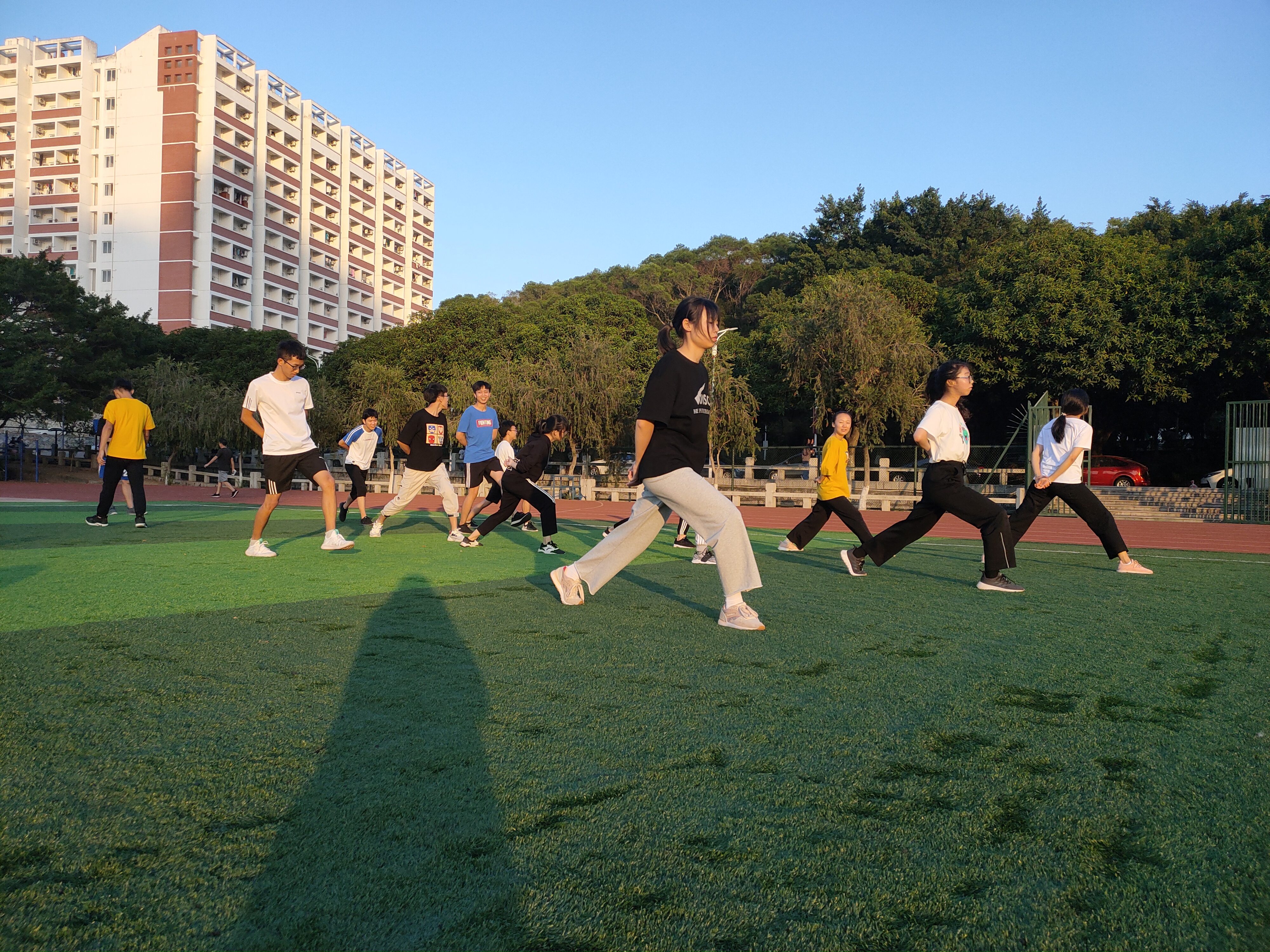 我院运动员于每日傍晚时分在田径场进行训练。训练开始前,运动员们听从教练的统一安排进行拉伸、高踢腿等热身运动,在进行了热身运动后,运动员们按照教练计划有条不紊的开展训练工作。