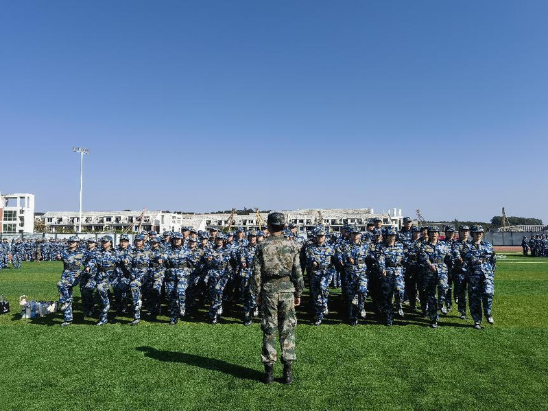 为丰富新生军训内容,呈现多样化的军训成果,此次军训除常规的队形队列训练外,同学们还学习了军体拳、手语操等军事技能。在军体拳方阵中,同学们身形矫健、拳脚有力,马步扎实稳健,口令自信洪亮。通过短短不到一周的训练,成效显著,队伍从松散生疏到整齐壮阔,动作娴熟,行云流水,一招一式展示着当代大学生的蓬勃朝气。