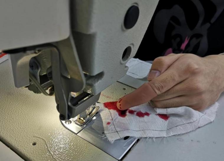 此次演习有学院副院长徐海燕、专任教师张艳、实验中心陈艳秋等师生代表约15人一起参王爱约楼608服装缝制工艺室的演练现场。演练开始于学生的课堂中,学生在操作缝纫机进行缝制面料过程中,由于学生操作不当使得缝纫机速度过快,有3位同学导致缝纫机机针戳伤学生的食指、手指被缝纫机扎穿。