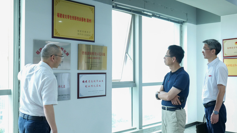 614日下午,纺织与服装学院院长邱夷平、党委书记黄国波带队赴福建省大学生创新创业基地(泉州)调研,走访福建省触众股份有限公司、福建省脸谱网络科技有限公司和泉州众全科技有限公司,开展“访企拓岗促就业”活动。