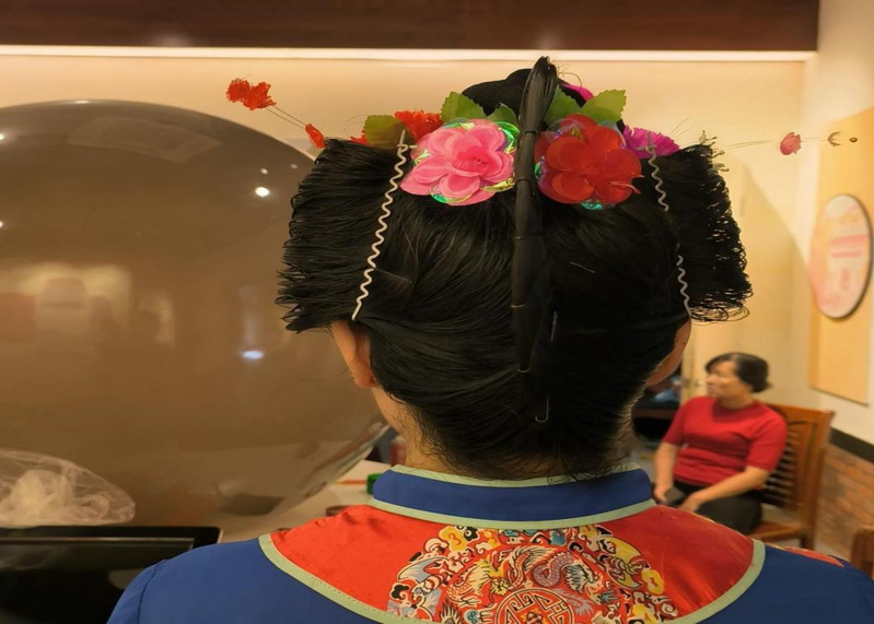 蟳埔女自打孩提时期,便将头发留长,系上红绳,穿上骨髻,插上发钗,另用鲜花串成花环,圈戴在脑后,如花园般鲜艳芬芳,俗称为“簪花围”,被称为“头顶上的花园”。蟳埔女的服装简朴宽松,俗称“大裾衫,宽筒裤”,极具“海丝”遗风,是古代海上丝绸之路历史的见证,承载着渔家人的情感与历史记忆,也成为泉州一张独特的文化名片。