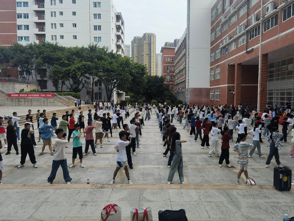 每日午后,96名由2023级新生组成的广播操队伍在中山广场迅速集中,充分利用课余时光进行广播操训练。“第十套广播体操现在开始”,随着音乐的响起,同学们整齐划一地跟着节拍,伸臂、蹬腿、扩胸、转体,动作娴熟、张弛有度,一遍又一遍精准做好每一个动作,力求每个动作都做到最好,争取达到“快、静、齐”训练目标。学生会文艺部负责人将动作拆解,耐心细致进行教学。训练尽管充满疲惫和困意,却未能阻挡队员们训练的脚步,他们昂着头,挺着胸,展现了纺服学子健康向上、朝气蓬勃的精神风貌。