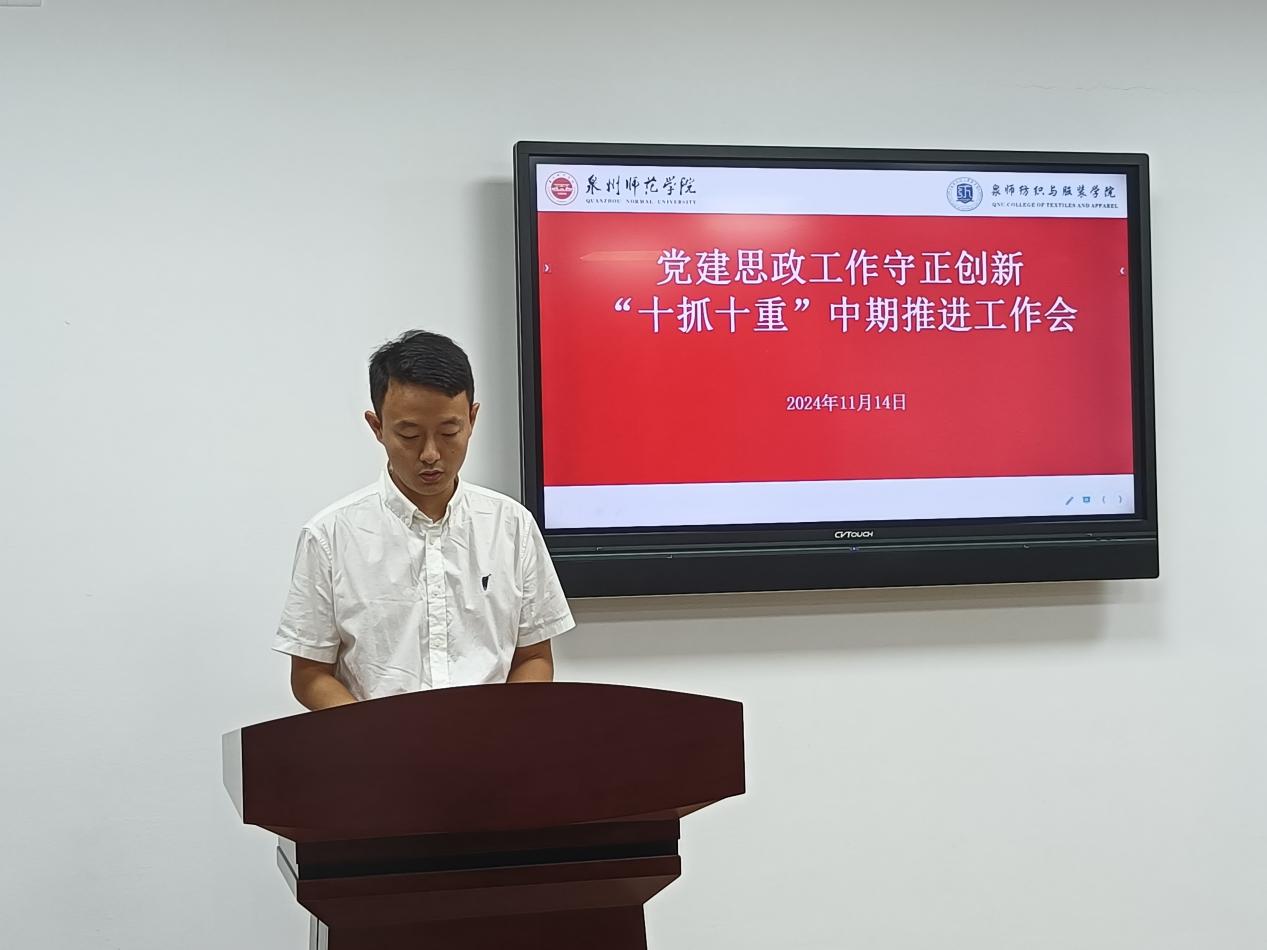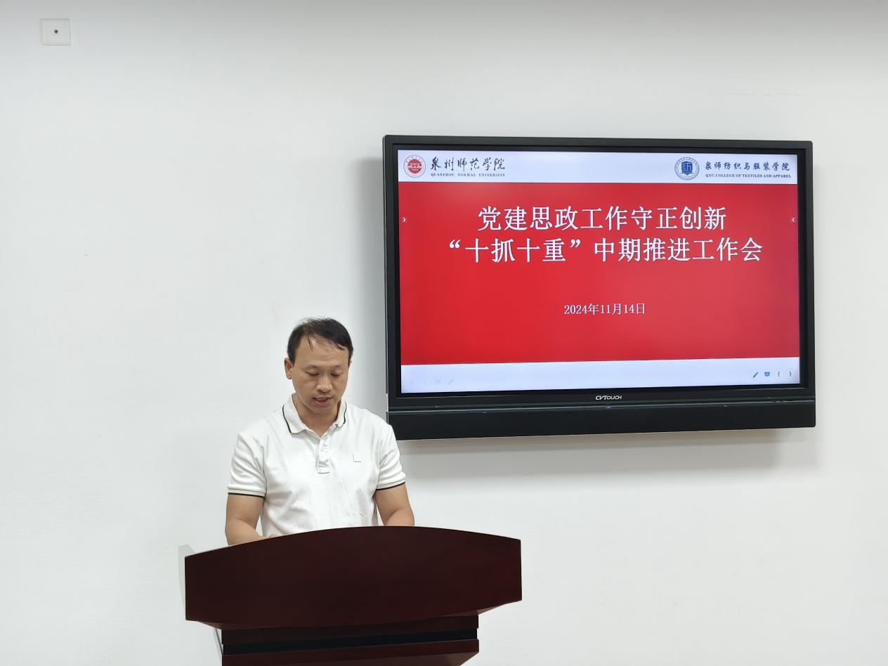 会议要求,要全面系统总结学院党建思政工作主要做法和成效经验,在原有基础上着力构建纺织与服装学院党建思政工作“五聚焦五促进五提升”工作模式,进一步提升党建思政工作质量和水平。一是“五聚焦”:聚焦正确政治方向、聚焦教育初心使命、聚焦基层组织建设、聚焦学院事业发展、聚焦教师队伍成长。二是“五促进”:以“效力纺服”促进高质量发展,争当学校高质量发展“主力军”;以“品质纺服”促进高质量发展,争当学校高质量发展“样板地”;以“创新纺服”促进高质量发展,争当学校高质量发展“先锋队”;以“开放纺服”促进高质量发展,争当学校高质量发展“融合地”;以“青春纺服”促进高质量发展,争当学校高质量发展“新高地”。三是“五提升”:着力提升管党治党水平、着力提升内涵建设水平、着力提升协同育人水平、着力提升成果转化水平、着力提升责任落实水平。全院师生要按照校党委工作部署,以更加饱满的热情、更加务实的作风、更加有力的措施,扎实推进党建和思政工作,以高质量党建引领保障事业高质量发展,奋力答好“强国建设、泉师何为”的纺织与服装学院答卷。