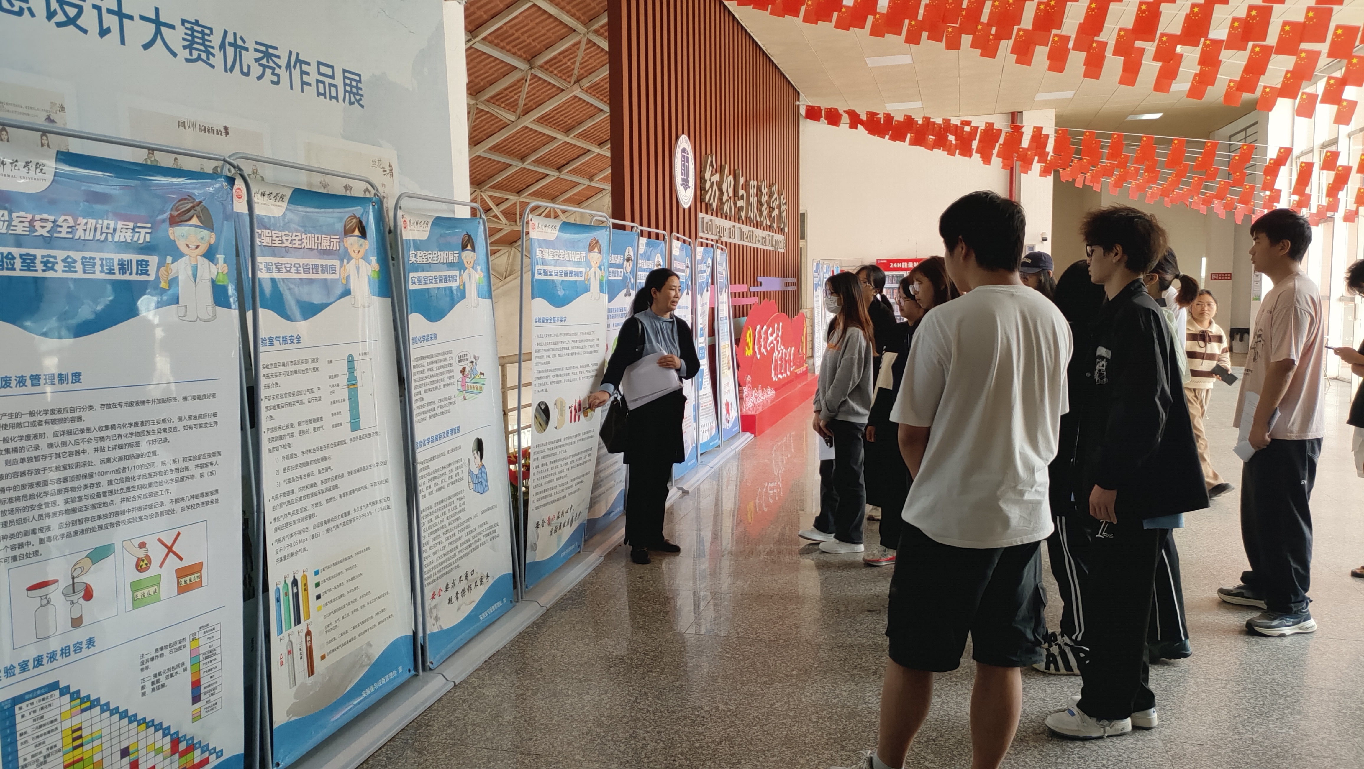 11月8日下午,纺织与服装学院实验中心组织实验室学生安全协查小组在荣助楼二楼大厅展厅集体学习实验室安全制度知识内容活动。