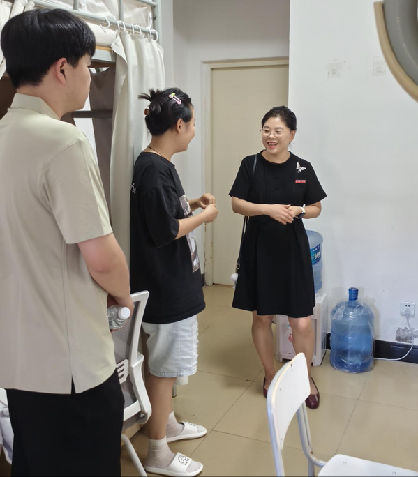 走访过程中,学院领导与新生们亲切交谈,细致询问同学们的生源地、入学感受及生活需求,耐心解答同学们关于专业情况、校园生活、学习规划等方面的疑问。领导们向新同学介绍学院的发展历程、学科特色与人才培养成果,鼓励同学们要尽快适应新环境,夯实专业基础,积极参与实践,在未来的学习中不断提升综合素养。要树立远大理想,珍惜时光、脚踏实地,将个人成长与国家发展相结合,不辜负美好韶华。
