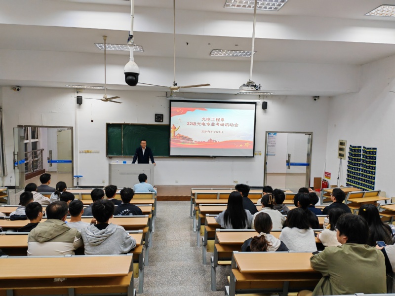 林蕙琼指出,光电工程系始终坚持立德树人根本任务,高度重视人才培养工作,从优化学涯指导入手,从而提升人才培养层次,积极鼓励学生考研逐梦。从新生入校开始,就积极为学生埋下考研深造提升能力的种子,拓展成长成才空间。林蕙琼表示,希望各位同学坚定目标、刻苦读书、认真备考,劳逸结合、提高效率。在实现个人梦想的同时,抓住时代机遇,树立远大志向,时刻保持昂扬斗志,在实现中华民族伟大复兴的征程中贡献青春力量。