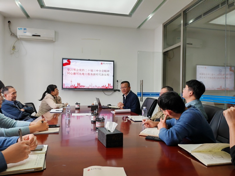 为深入学习宣传贯彻党的二十届三中全会精神,教育引导全系党员干部把思想和行动统一到全会精神上来,2024年11月21日下午,光电工程系系主任余燕忠教授以“学习领会党的二十届三中全会精神,同心谱写光电工程系新时代新征程”为主题为全系教职工讲授专题党课。