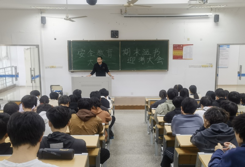 柯世池组织同学认真学习《学生手册》中相关考试规定,指出考试违纪的严重后果通过列举违反考试纪律的案例为同学们敲响警钟,强调同学们要严肃对待考试,组织各班同学签订光电工程系学生考试诚信承诺书,在学生心中竖起红线,引导学生严守考纪,诚信应考。同时就电动车安全教育、医保工作、防诈骗、食品安全、交通安全和消防安全等做了重点强调,教育引导同学们提升安全意识,确保人身财产安全。