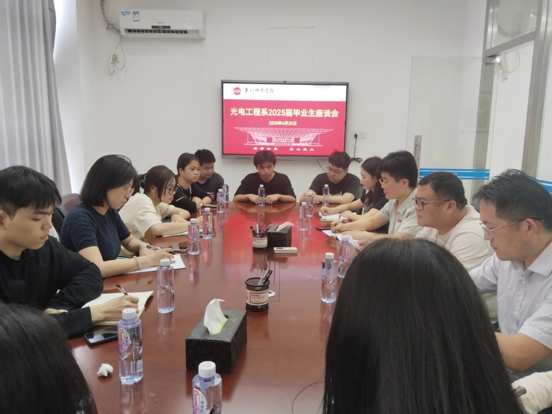 为深入了解毕业生思想动态,做好教育管理服务工作,4月29日,光电工程系在千墅501会议室召开2025届毕业生代表座谈会。系党总支书记林蕙琼、专业主任渠彪、辅导员柯世池及12名毕业生代表参加,会议由柯世池主持。