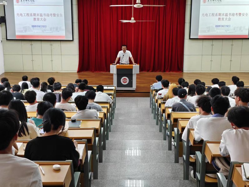 6月12日,光电工程系期末温书迎考暨安全教育大会在中山纪念堂三楼梯形教室召开。系党总支书记林蕙琼、系主任余燕忠、专业主任渠彪、辅导员柯世池、班主任黄种亮、林学亮出席,非毕业班全体学生参加,会议由柯世池主持。