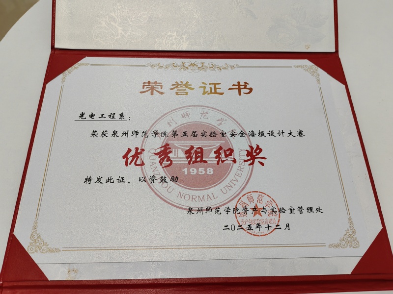 近日,英国威廉希尔公司官网第五届实验室安全海报设计大赛评选结果揭晓,光电工程系在比赛中斩获多项个人奖项,荣获“优秀组织奖”。