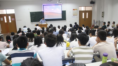 李清彪以“9.18”事件为切入点,回顾了中华民族从百年沉沦到百年复兴这一大起大落的历史过程,重点讲述了八年抗战和国共内战期间的历史事件。李清彪指出,中华民族的伟大胜利在于中国共产党极大地唤醒了民众保家卫国的民族意识,并号召工农武装队伍在国家生死存亡的危急时刻承担起救国使命,突出重围、杀出血路,夺取革命胜利。他强调,每位师生要学习历史、铭记历史,只有深刻了解过去,学习老一代革命家顽强的生命力和战斗力,才能充实心灵、提高觉悟,树立不怕困难、勇往拼搏的精神。他要求,学生要提高思想觉悟,勇于创新、敢于实践,加强知识的转化与应用,弥补知识创造中与名校的差距。
