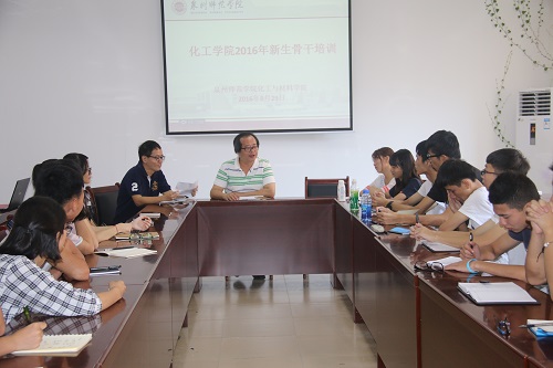 2016年8月29日-9月2日,在2016级新生报到的前一周,化工与材料学院从录取的学生名单中挑选出24名在高中学习、工作表现比较优秀的学生进行新生骨干培训。让他们提前熟悉学校、学院和录取专业的相关知识,以及作为学生干部的工作职责和应具备的能力素养,让他们尽快融入大学生活,进而帮助其他同学更快适应大学这一崭新舞台。