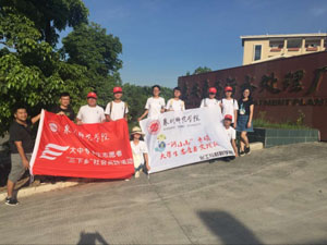 实践队来到污水管网公司,厂长和兰经理向我们介绍了一级A类排放的污水处理工序,点明了该污水处理厂的特色,并带领我们参观了污水处理和监控设备。最后,取处理后水样。