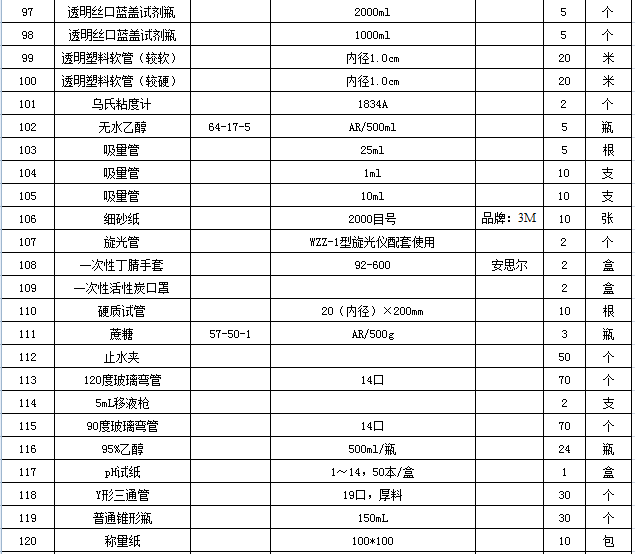 二、项目名称:化工与材料学院2018-2019第一学期实验教学低值易耗品等仪器设备