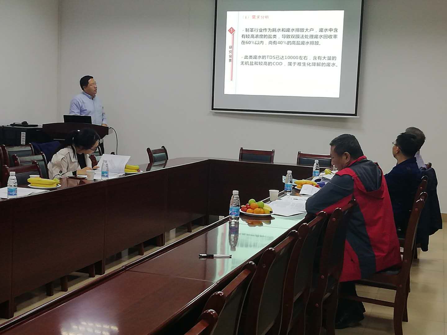 会上,项目负责人闽江学者袁俊生教授就项目完成情况作了汇报。专家组认真听取了项目报告,审阅了相关资料。经过认真讨论,一致认为,该项目采用纳滤膜和反渗透膜,开发出电驱离子膜法处理制革高盐废水处理新技术,建设了每小时1立方米的中试装置,为解决制约制革行业发展的高盐废水排放问题提供了一条新途径。该项目完成了合同书的各项任务,专家组一致同意通过验收。