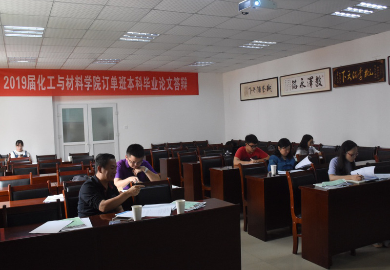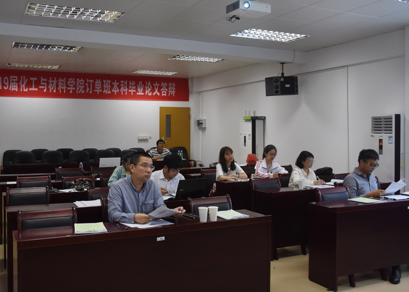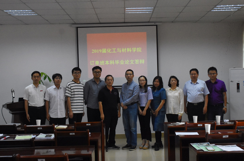 5月25日,化工与材料学院2019届“中化班”、“百宏班”和“安踏班”本科毕业论文答辩会在邱天生实验楼有序地举行。本届“订单班”毕业论文答辩小组由百宏聚纤科技的研发部副总经理刘智敏高工和生管部经理沈家庆高工、中化泉州石化的刘杰博士和安踏(中国)的朱小平工程师等企业专家和学院的卓东贤教授、方军教授、龚丽芬教授和陈文杰副教授等专业教师所组成的,并对我院21名“订单班”学生的毕业论文答辩工作进行了全面跟踪检查。