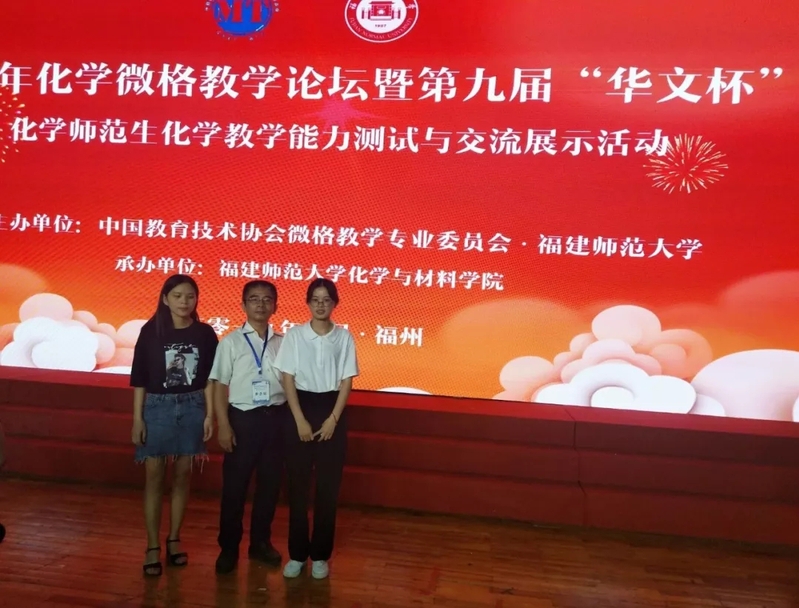 近日,由中国教育技术协会微格教学专业委员会、福建师范大学主办的2019化学微格教学论坛暨第九届“华文杯”化学师范生教学技能交流展示活动在福建师范大学旗山校区举行,来自全国29个省市自治区的95所高校的708名选手和指导教师参加了活动。全国各大高校化学教育硕士、化学课程与教学论研究生、化学专业本科大四(15级)和大三(16级)学生共478名参加了教学技能交流展示活动,我院化学专业2016级5名学生参加了教学设计和教学能力的比赛。本次活动,研究生与本科生同场竞技,参赛选手中只有2016级学生尚未经历教育实习环节。我院高度重视本届技能交流展示活动,认真组织选拔,并且安排学院相关老师和外聘兼职教师进行指导,参赛选手们亦坚持勤学苦练,终于在竞技中显露锋芒,取得了可喜的成绩。最后,我院在教学设计能力比赛中,1人获一等奖,3人获二等奖,1人获三等奖;教学能力比赛中,1人获二等奖,4人获三等奖。5位选手在两项比赛中成绩都在三等奖以上。据悉,“华文杯”今年第一次设立化学学科展示交流活动,我校选手首次参加本赛事即以较强的实力反映了我校化学师范生具有良好的综合素质。