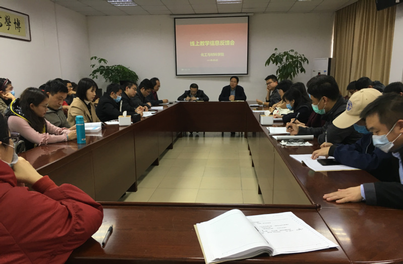 会议上半场为线上教学信息反馈会。首先,袁俊生院长讲述了此次会议的目的,指出了做好线上课堂教学的重要意义,强调了课程组教学传帮带的重要性。随后,谢晓兰副院长就近期任课教师在线上教学的方法、内容、学情监控等存在问题进行了反馈并提出了建议。教师们认真记录了相关问题和改进办法。