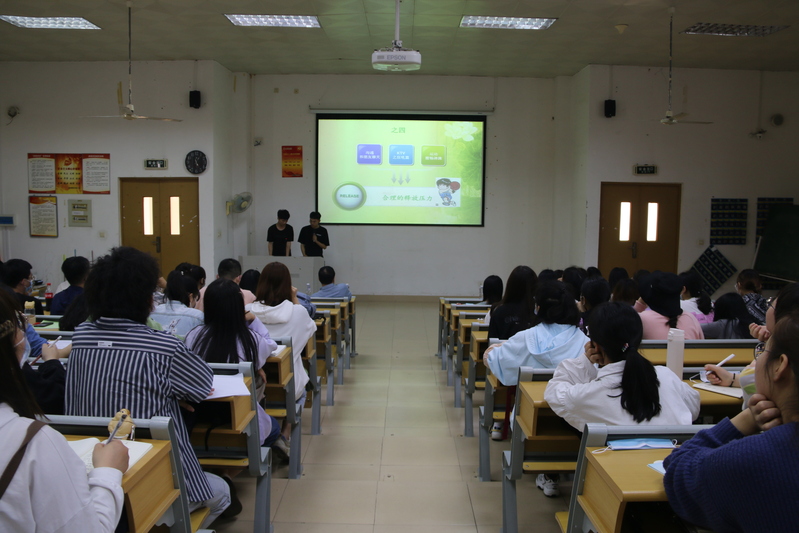 交流会上,今年成功考上南京理工大学的陈柳、考上福州大学的童淑芬、陈乐俊、曹宏等四位同学依次围绕自己在考研过程中的院校选择、资料收集、学习方法、时间安排、心态调整、考研复试等方面的内容进行了分享,并耐心回答了学弟学妹的提问。