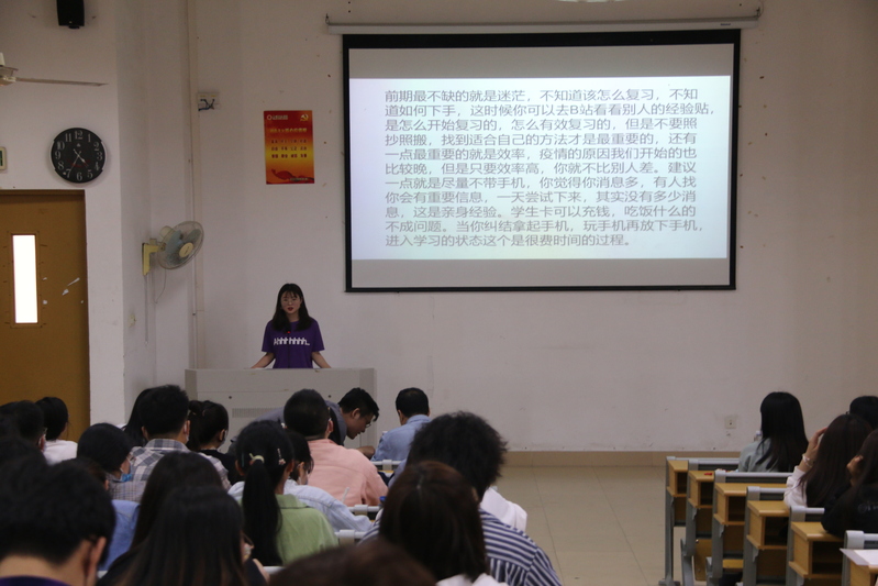 曾碧辉副书记在主持中强调,考研贵在坚持,希望同学们意志坚定,认真备考、全力备考,要远离手机、远离游戏,要注意劳逸结合,保持身心健康,并预祝大家能够取得好成绩,争取一战上岸,考取心目中理想的大学。