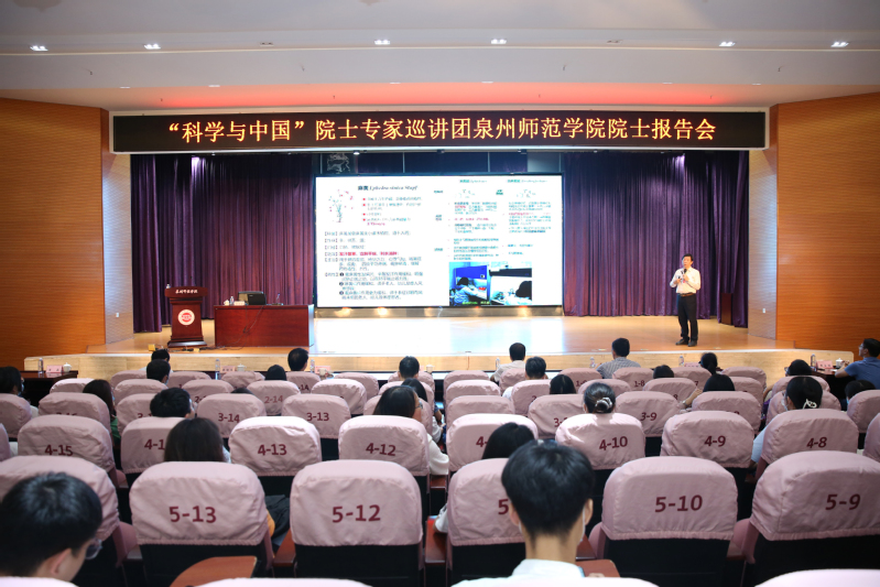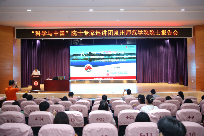 5月14日,“科学与中国”院士专家巡讲团英国威廉希尔公司官网院士报告会在特教大楼第一学术报告厅举行,中国科学院院士林国强为作题为“中医药守正创新与手性化学”专题报告。泉州市科协副主席魏隆福,泉州市中医药协会代表,副校长夏侯建兵,科研处处长戴聪杰、副处长苏子生,我院党政班子成员以及师生代表300余人参加了报告会。报告会由袁俊生院长主持。