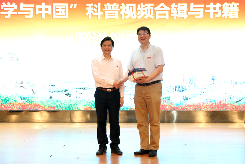 报告会前,林国强院士向学校赠送了《科学与中国科普视频合集与院士传记》等书籍。