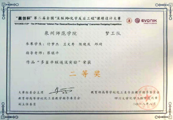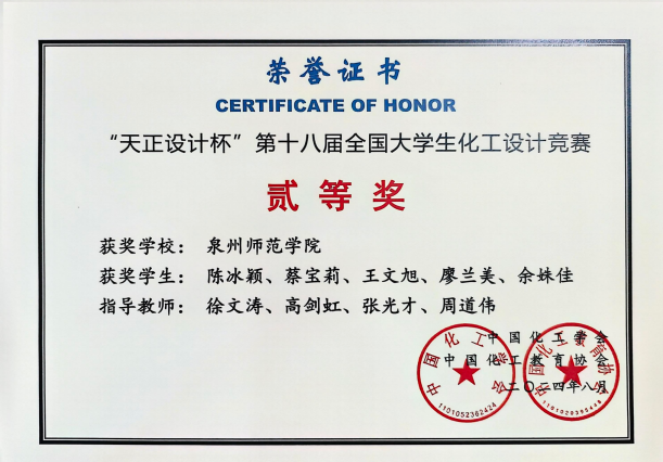 近年专业积极组织学生参加各级学科竞赛,已获得全国大学生化工HSE创新设计大赛一等奖,“互联网+化学反应工程”课程设计大赛二等奖等国家级奖项,并已连续10年获得全国大学生化工设计大赛国家级奖项。毕业生就业率均在96%以上,进入央企或行业龙头企业就职30余人。部分学生考取复旦大学、天津大学、北京化工大学、福州大学等高校研究生。