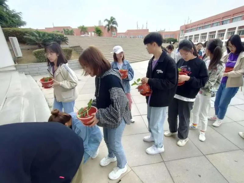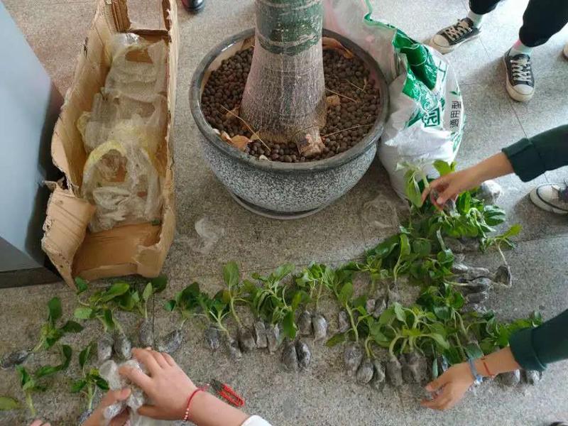 绿植养护前进行了认识一个新朋友的破冰游戏,同学们积极参加游戏。之后是分发向日葵花苗。同学们排队有序排队领取花苗和营养土。