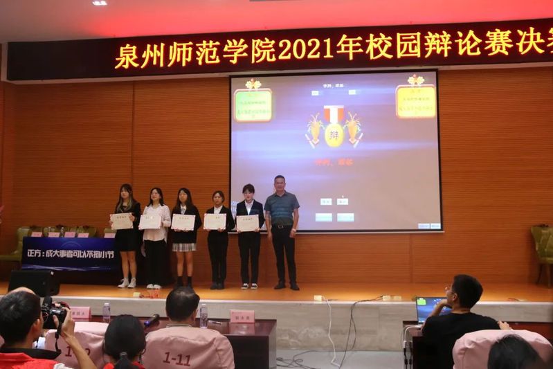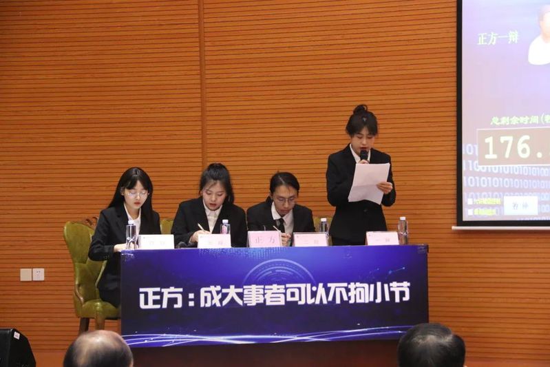 此次决赛以“成大事者能不能拘小节”为辩题,我院辩论队作为正方“成大事不能不拘小节”对战反方文学与传播学院辩论队。经过一番紧张激烈的角逐,我院辩论队虽未能最后夺冠,但依然取得了第二名的好成绩。辩论队成员连冰君、段雅璐、王炳烨和黄梦娜等4名同学均获得优秀辩手称号,连冰君同学在决赛中以优秀的表现斩获最佳辩手称号。
