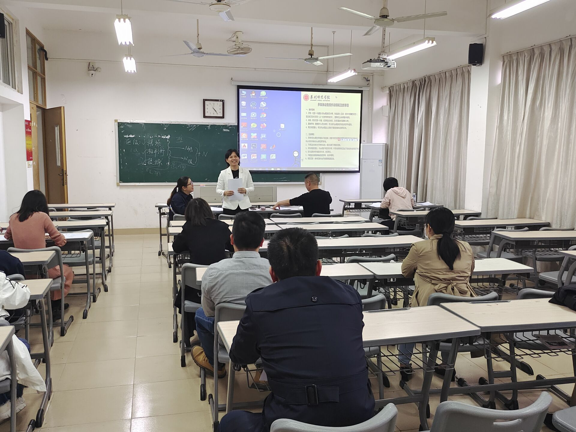 为进一步提高学校青年教师思想政治素质和教育教学能力水平,11月18日下午,我院在理工楼教室举办教师教学竞赛,开展教师教学新秀奖评选活动。本次竞赛通过赛前抽签方式,将参赛青年教师分为两组进行比赛,两组比赛分别由教学经验丰富的解庆范教授和黄妙龄教授主持。同时,学院领导、评委专家小组、参赛选手以及部分教师到场参与。比赛现场角逐激烈,课堂展示精彩不断。