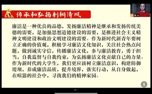 在世遗古城,实践队成员在清风亭、三正园、苏廷玉故居等廉洁文化地标进行苏廷玉巧抑粮价、李光地勤恳从政等廉洁故事分享,声情并茂地讲述一个个廉洁故事,用“廉”声传播刺桐清风。1月15日至20日,实践队成员将几天来的所见所闻所感结合习近平总书记关于廉洁文化的重要论述,加以整理,制作PPT课件,在学院开展多场“寻刺桐清风,访古城廉迹”线上宣讲活动,从学习习近平总书记关于廉洁文化的重要论述、探寻世遗古城中的廉洁文化、作为新青年如何传承和弘扬刺桐清风三个方面展开,延伸廉洁文化宣传触角,进一步推动实践队成员 “以讲促学、以讲促思、以讲促悟”,宣扬廉洁理念,引领廉洁风尚。