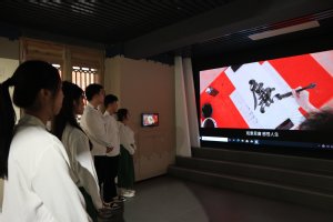图7实践队成员观看《清廉中国·廉洁文化中国行|世遗古城 清风知鲤》宣传片