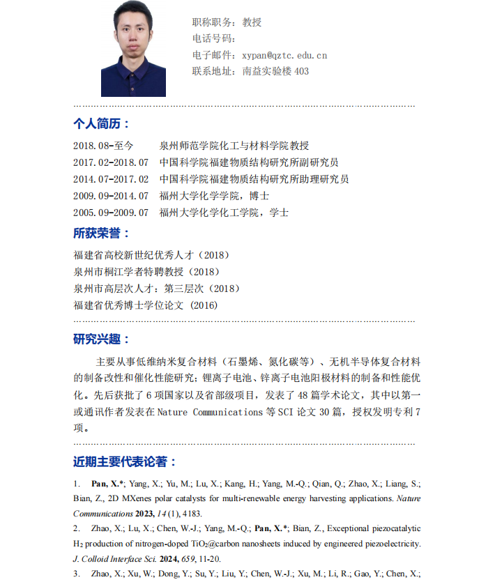杨大鹏教授(闽江学者特聘教授)